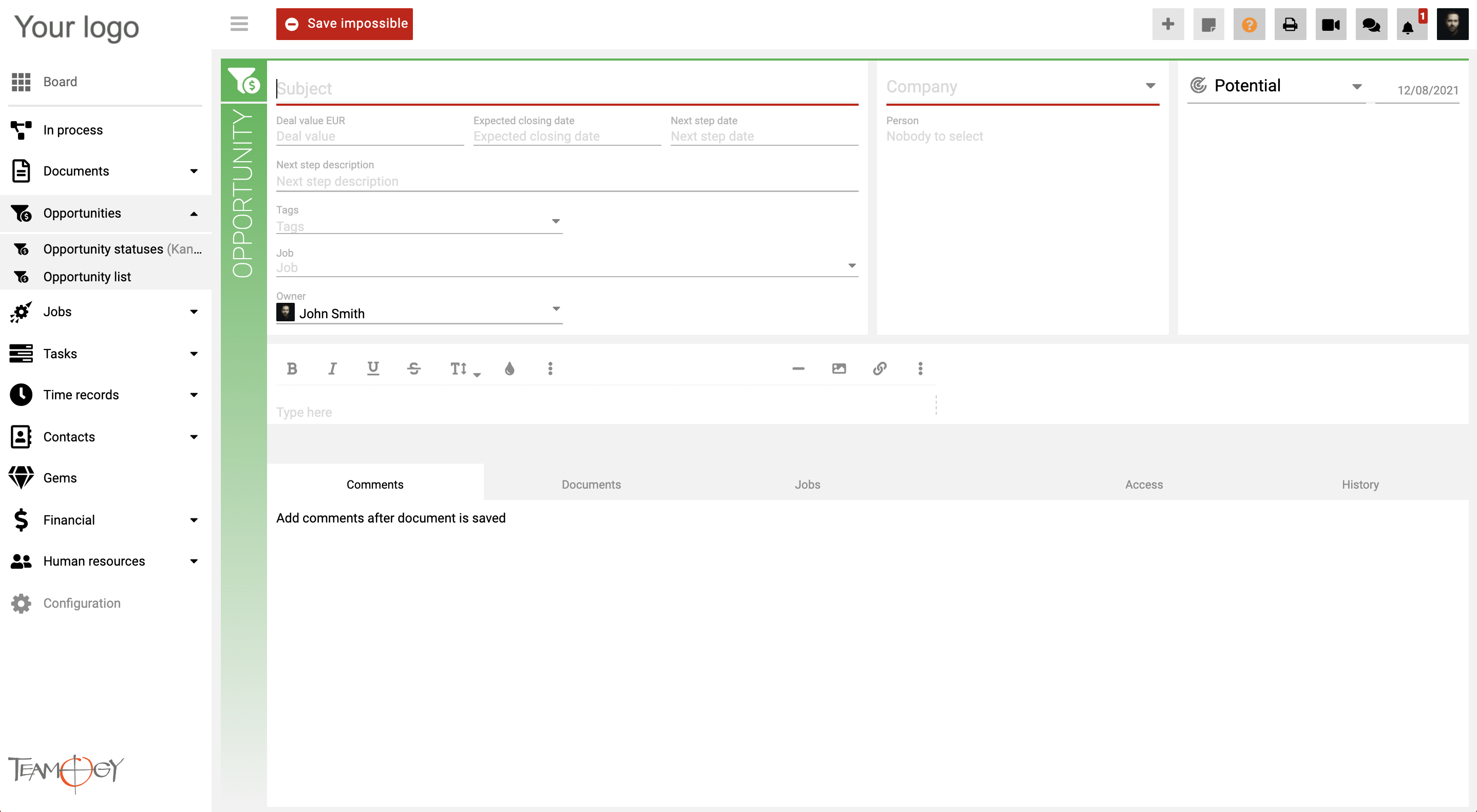 4. Vyplňte všechny detaily. Povinná pole jsou červeně podtržena (mohou se lišit s ohledem na nastavení společnosti).